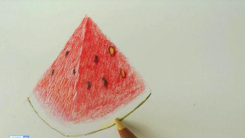 1. 起稿:用铅笔轻轻地在画布上勾勒出西瓜的轮廓,注意比例和形状的准确性。